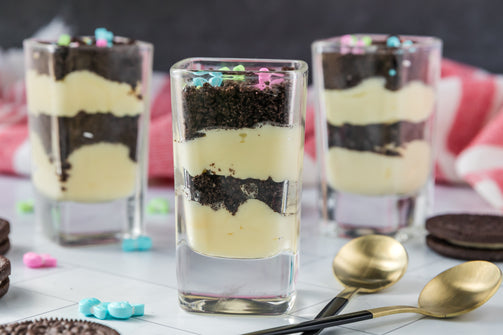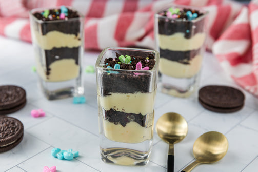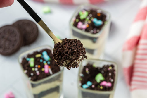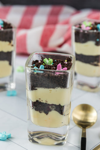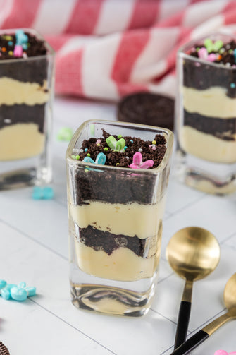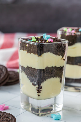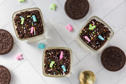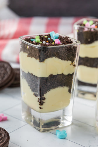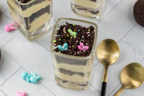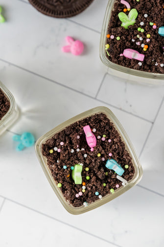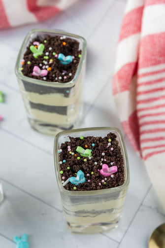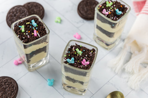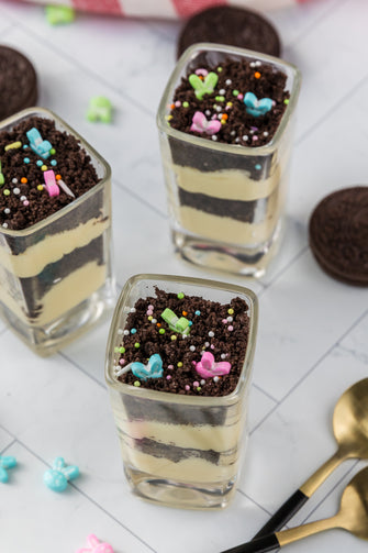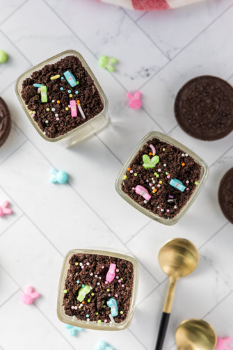 Easter Styled Dirt Cake is the cutest no-bake dessert for spring parties - creamy vanilla pudding "cheesecake" layers tucked between rich Oreo "dirt", then finished with a festive sprinkle topping. It's light, fluffy and fun but polished enough for an Easter table. Assemble it in individual cups for a fun grab and go treat or layer it in a trifle dish and scoop to serve, either way it's a make ahead win that chills overnight and tastes even better the next day.