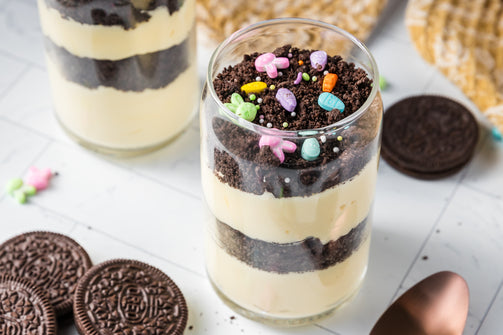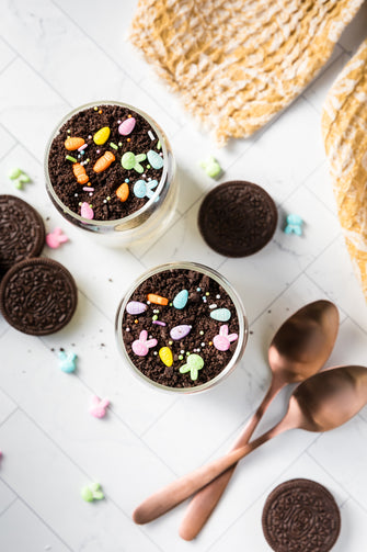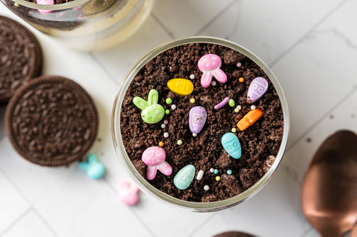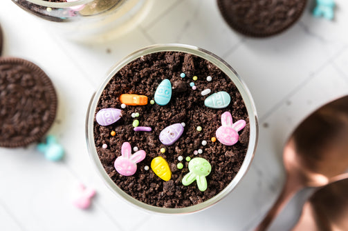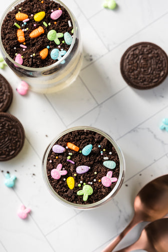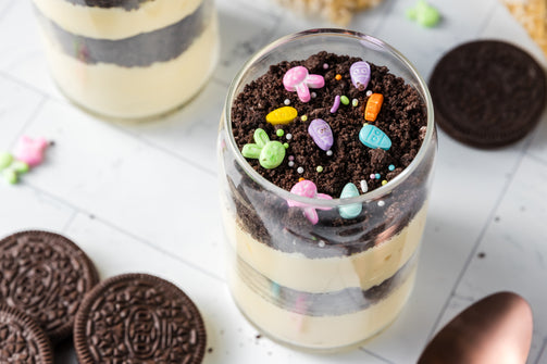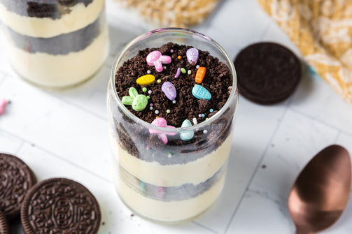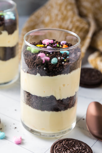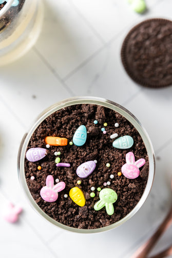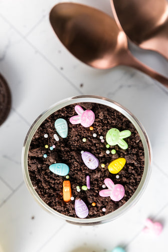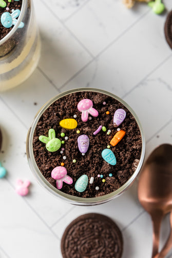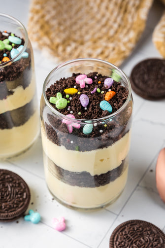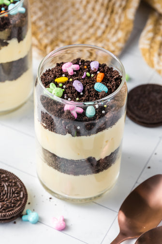 Easter Styled Dirt Cake is the cutest no-bake dessert for spring parties - creamy vanilla pudding "cheesecake" layers tucked between rich Oreo "dirt", then finished with a festive sprinkle topping. It's light, fluffy and fun but polished enough for an Easter table. Assemble it in individual cups for a fun grab and go treat or layer it in a trifle dish and scoop to serve, either way it's a make ahead win that chills overnight and tastes even better the next day.