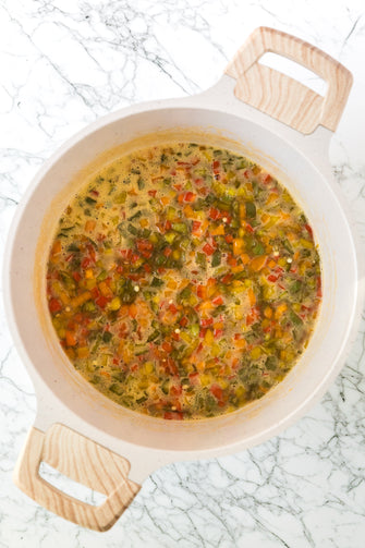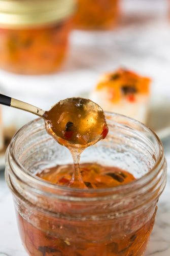 This Jalapeño Pepper Jelly is a holiday favorite, the perfect mix of sweet, spicy, and tangy! It's loaded with colorful bell peppers, tangy vinegars, and just the right kick of jalapeño. Serve it over cream cheese with crackers for the easiest party appetizer ever or gift it with a pretty bow!