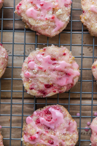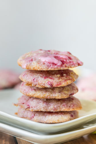 These Lemon Raspberry Glazed Cookies are the perfect twist on the Crinkle Cookie Craze! They are soft, chewy and bursting with bright citrus flavor. Made with cake mix and Cool Whip, they're incredibly easy but taste totally bakery-worthy. Each cookie is rolled in lemon sugar, then drizzled with a sweet raspberry glaze that add the perfect pop of color and flavor. They're light, fresh and perfect for spring gatherings. Easter trays, baby showers, even Valentine's parties, or anytime you want a pretty cookie that doesn't take all day to make!